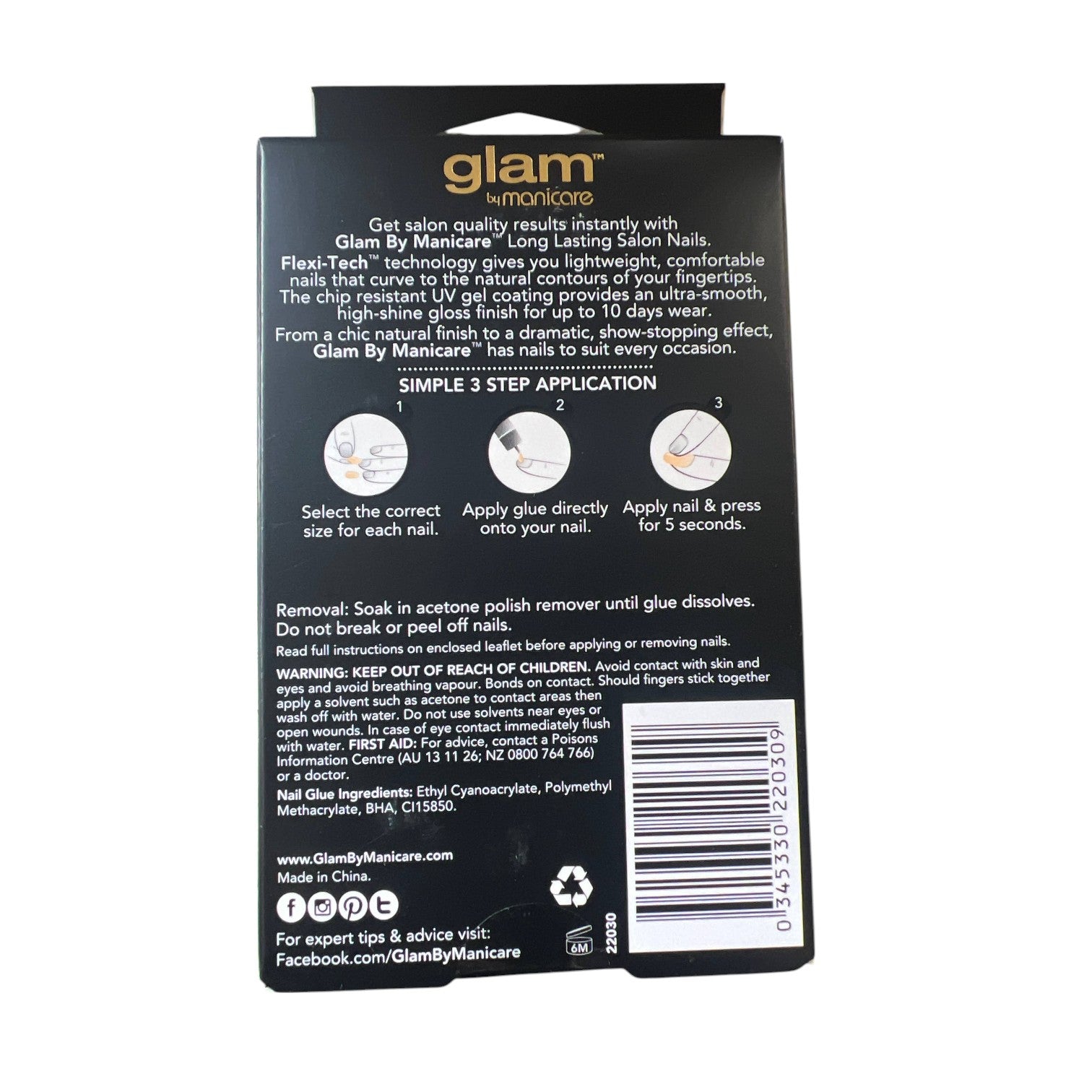 Manicare Glam Nail Glue Box False Nails With Nail Glue | 100 Nails