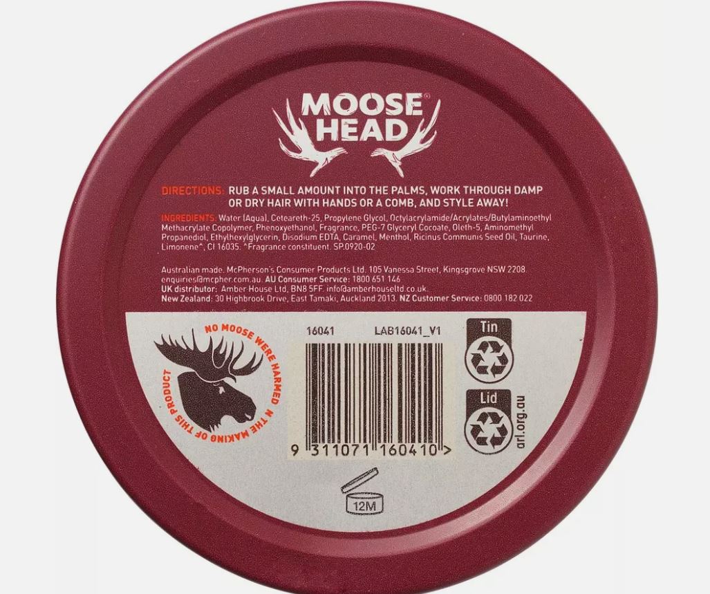 Moose Head Slick Pomade Hair Wax for Men Peppermint & Eucalyptus | Strong Hold | 80 g