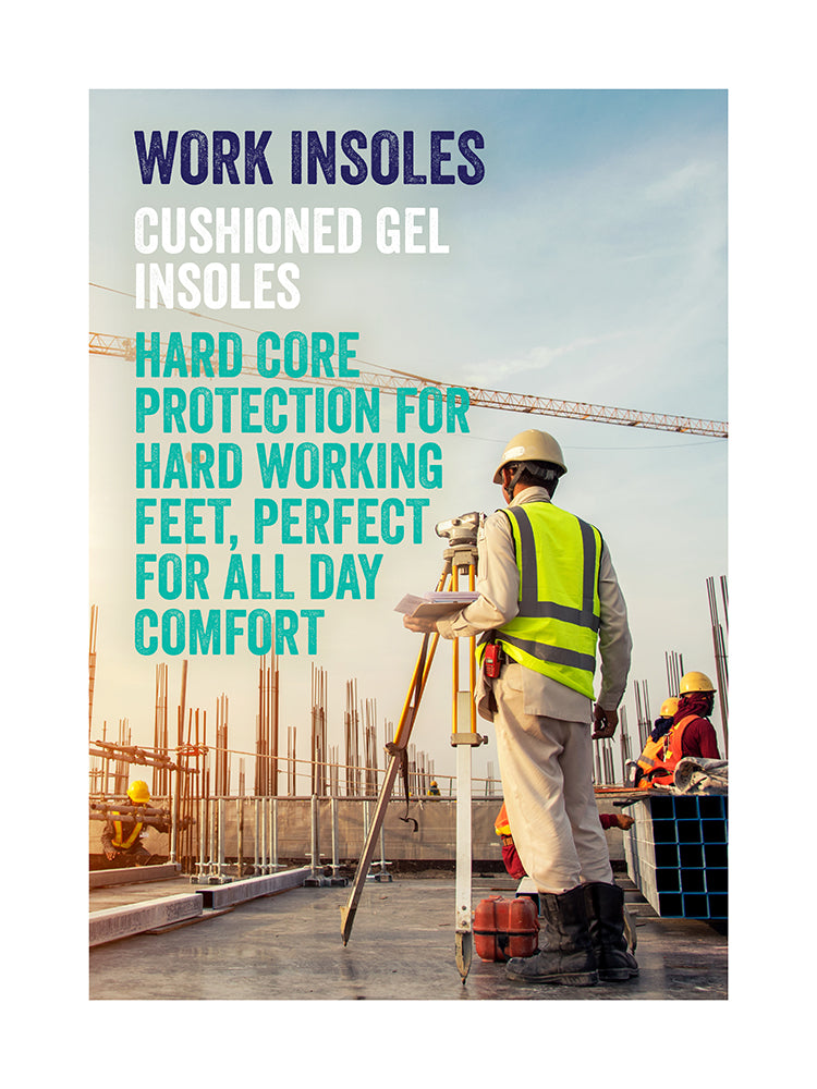 Unisex cushioned gel insoles designed by footwear expert for hard working feet.